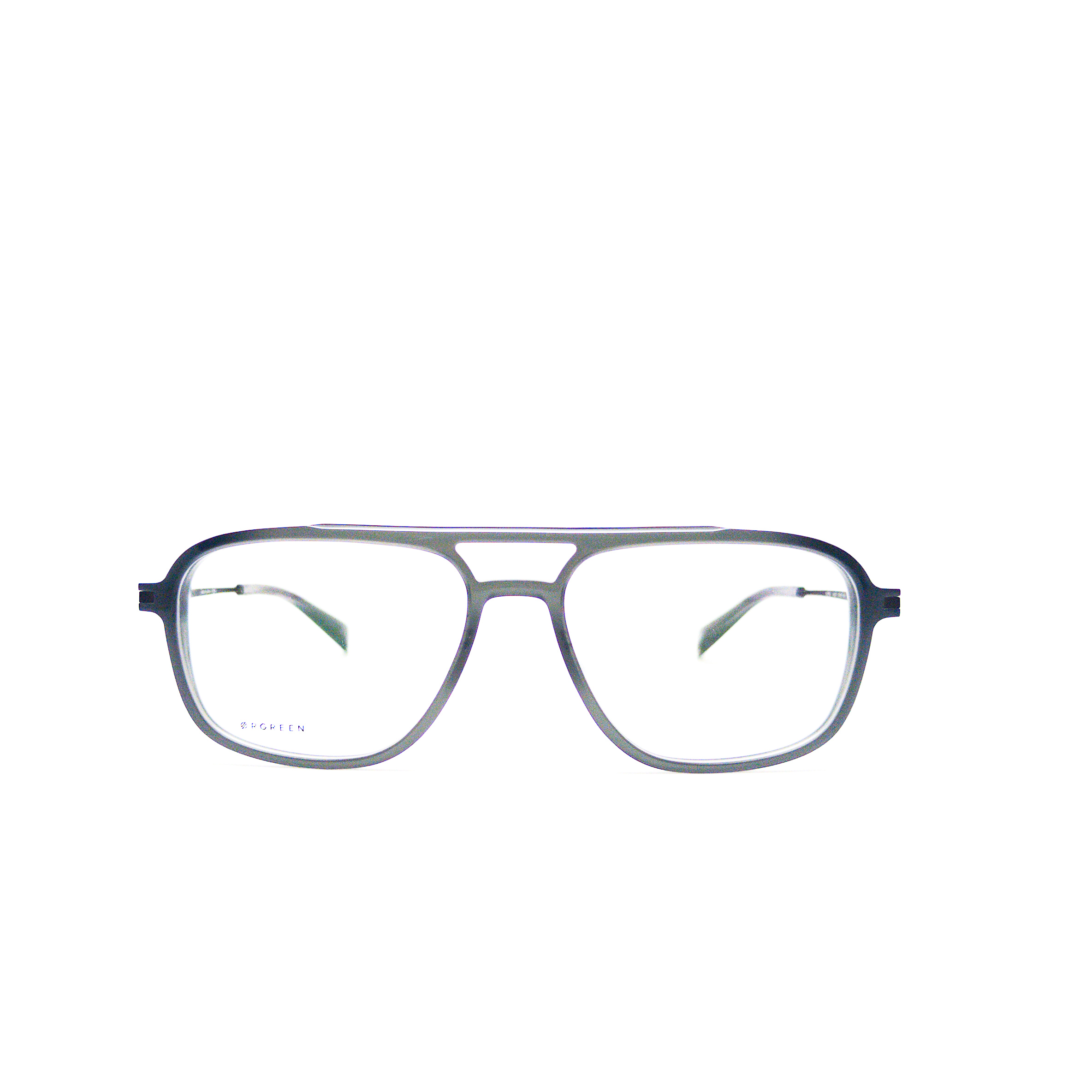 komprimierte Acetatfassung mit Titanbügeln und angesagtem Doppelsteg